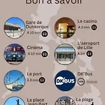 Malo Les Bains-stranden ligger 950 meter från boendet och Eglise Notre-Dame-du Sacre-Coeur de Malo-les-Bains placeras ca 550 meter bort. 25 minuters promenad tar dig till centrum. Det tar 5 minuter till fots att nå Le Malouin och Bella Italia, som serverar olika rätter. Gäster kommer att uppskatta närheten till Place des Francais Libres.